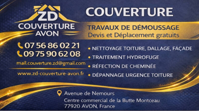 Bienvenue chez ZD COUVERTURE AVON, votre partenaire de confiance pour tous vos besoins en couverture et zinguerie en France. Spécialisés dans la rénovation, l'installation, le nettoyage et l'isolation de toitures, nous mettons notre savoir-faire au service de la protection et de l'esthétique de votre habitat. Qualité, durabilité et satisfaction client sont nos engagements. Découvrez nos services et construisons ensemble votre projet.